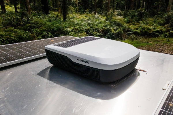 - 3000W inverter charger – up to 15oA – with built-in RCD to power everything except the water heater. With an automatic pass to switch to on grid power.
