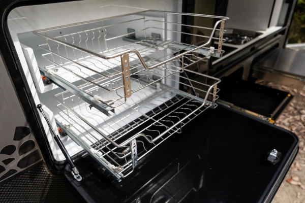 - Slide out dish storage and drying racks